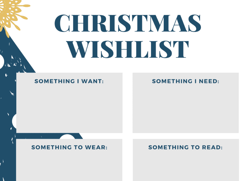 This post: Your guide to 4 gifts for Christmas: want-need-wear-read ideas + a printable Christmas wish list.