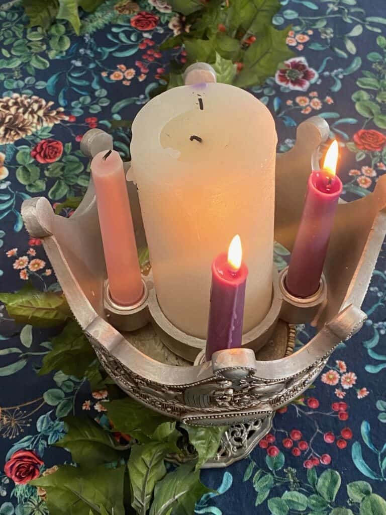 There are lots of beautiful Advent sets to choose from, but this “Birth of the King” Advent wreath is what my family has enjoyed over the years. It’s beautiful & decorative, and I enjoy putting it out every December!