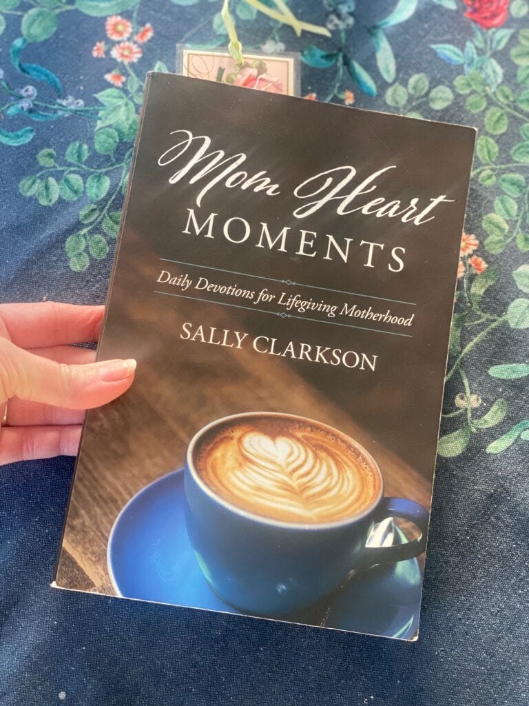 Mom Heart Moments, Sally Clarkson—my favorite devotion for moms (I read it every year)