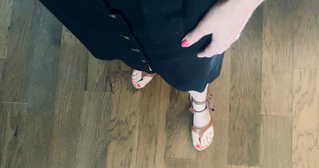 Scrub just enough to soften + smooth your skin. If you haven’t had a pedi in a while + your feet are calloused, it might take a few times to soften them up. Don’t over do it!