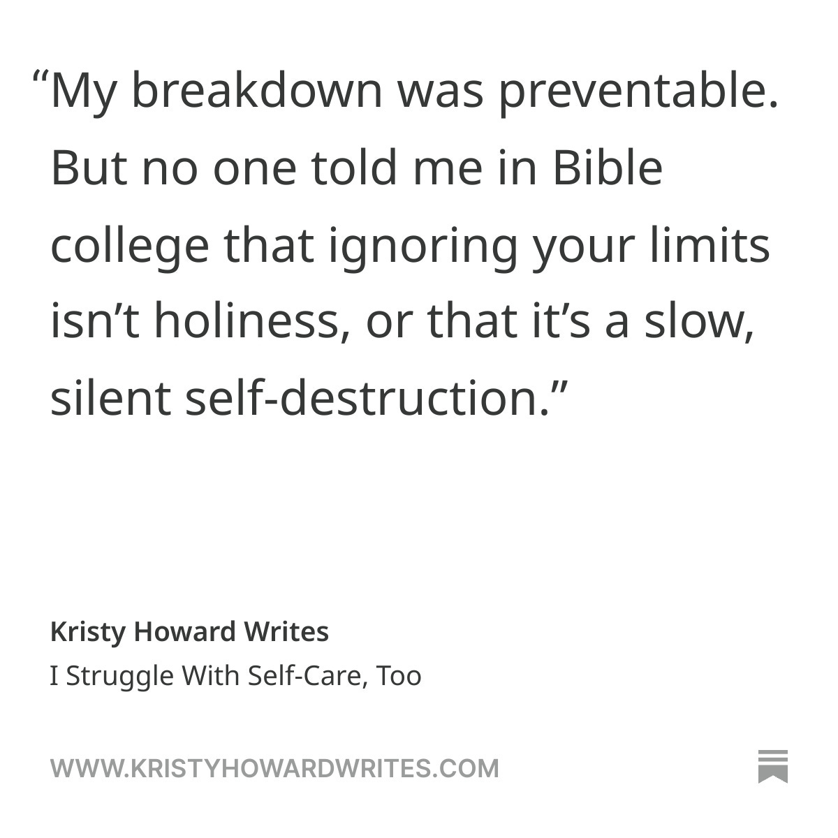 But no one told me in Bible college that ignoring your limits isn’t holiness, or that it’s a slow, silent self-destruction.