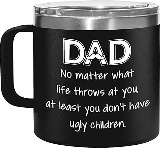 #7 Funny Dad Mug – This tongue-in-cheek, stainless steel mug will make any dad laugh! 14 oz, comes with a lid. $22.99 | shop now