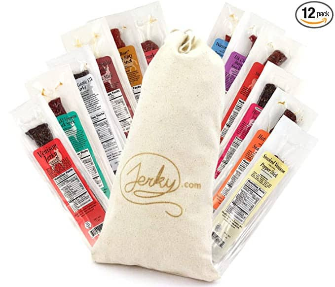 #6 Wild Game Jerky Gift Basket – Here’s for the protein lovers! Includes 12 pieces of high quality, exotic jerky sticks – everything from venison + elk to bison + boar. Made in the USA. $35.99 | shop now
