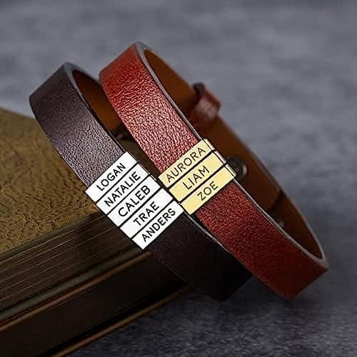 #3 Personalized Leather Bracelet – This handmade, leather bracelet can be personalized with up to five names! Perfect for my fellow large family tribes. $17.99 | shop now